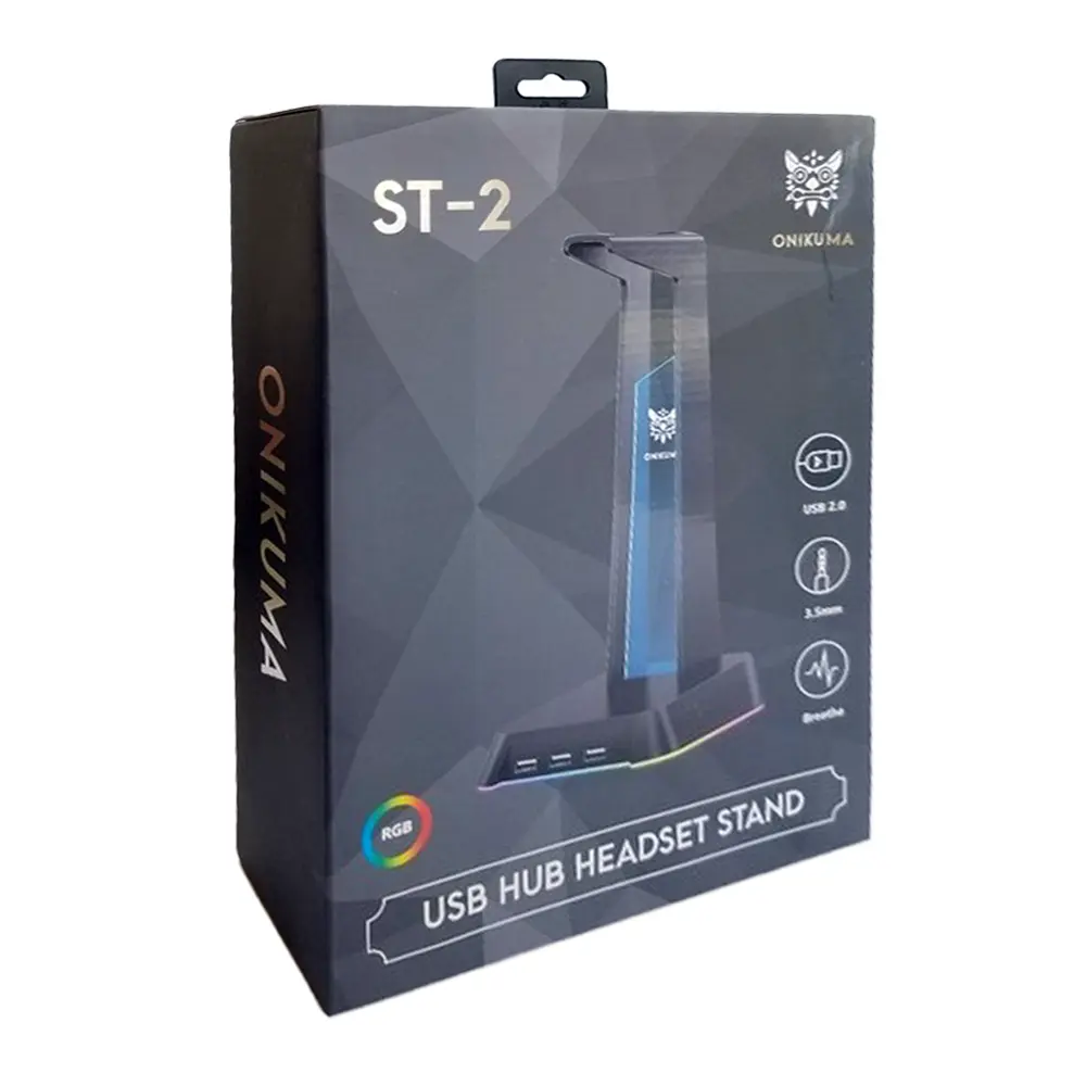 پایه نگهدارنده هدست ONIKUMA GAMING ST-2 از نظر سختافزاری یه شاهکاره! با نورپردازی RGB خیرهکننده در ۲ حالت تنفسی و چرخشی (ولتاژ DC 5V، جریان ≤۲۵۰mA)، ۳ پورت USB 2.0 برای شارژ سریع و انتقال داده، ۱ پورت ۳.۵mm AUX صوتی، کابل محکم ۱.۵ متری، ابعاد جمعوجور ۲۷۸×۱۴۶×۱۲۵ میلیمتر و وزن فوقسبک ۳۸۴ گرم، پایه ضدلغزش و فوقاستوار با کنترل تکدکمهای ساده، همه هدستهای گیمینگ رو مثل جواهر نگه میداره و همزمان میزت رو به هاب هوشمند تبدیل میکنه – دیگه ستاپت بدون این غول کامل نیست!
